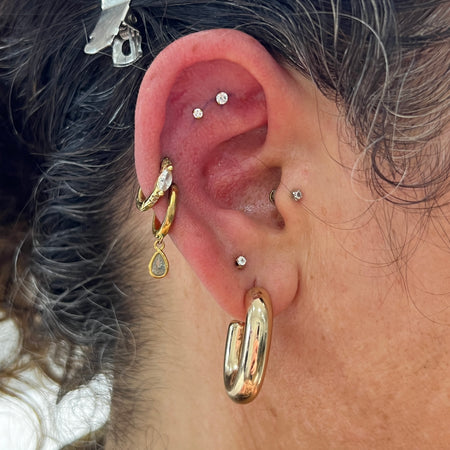 Tijdens de afspraak kijken we altijd naar de vorm van jouw oor om de beste plek te bepalen. Zo ligt de piercing mooi in lijn met je bestaande sieraden en ontstaat er een gebalanceerde uitstraling.